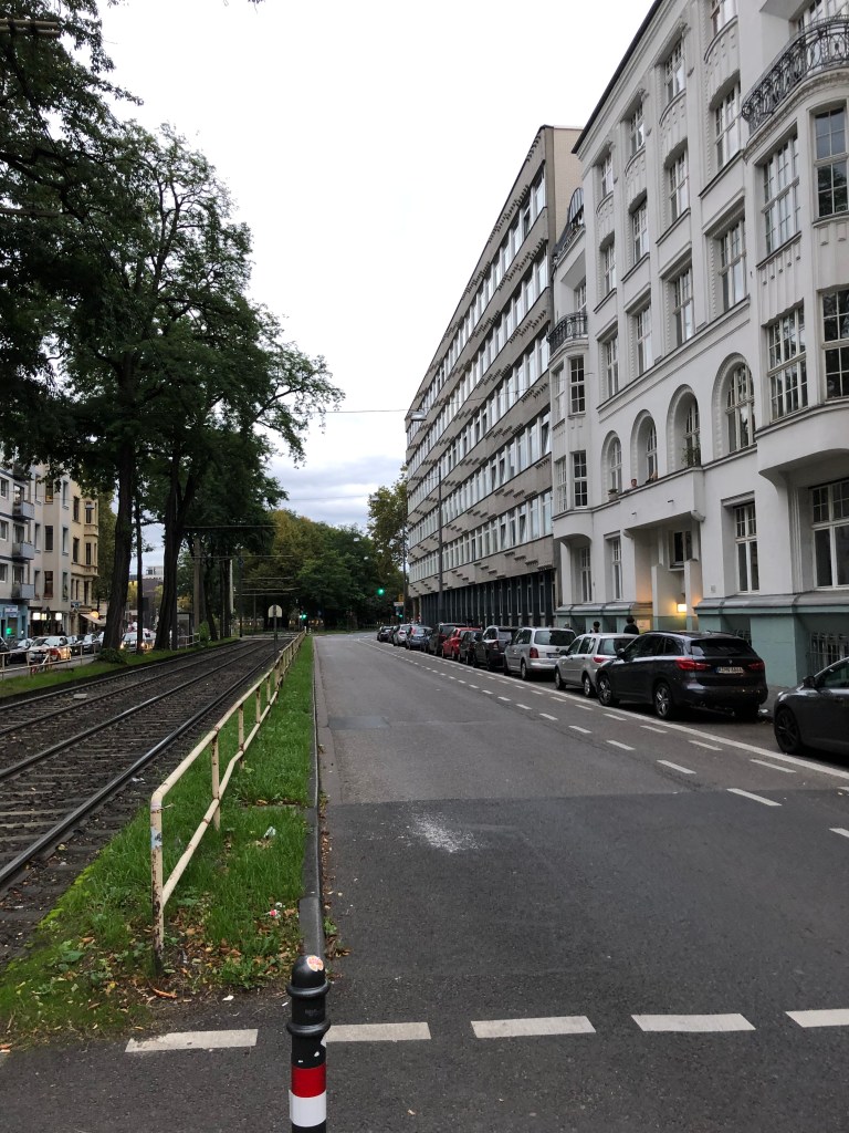 After bopping around downtown I slowed down. I had one spot left to see in Cologne, my grandmother’s childhood home. This wasn’t far from my hostel, so I walked it. Both hostel and home are located on the ringstrasse, or ring road, a term I learned in a History of Cities course I took in undergrad. A more exact layout like Boston’s hub concept, Cologne is organized with arterial spokes emanating out from downtown and a couple of ring roads circling it. The spokes are the primary roads, rinstrasse segments are secondary, and then tertiary streets and whatnot filled in the rest. My grandmother’s childhood home, on Ubiering, was at the southeastern terminus of the ringstrasse where the central boulevard fanned out into a small park as it reaches the west bank of the Rhine. I really liked this neighborhood, where shops and restaurants contributed to lively sidewalks with people of all ages, and 4-8 story residential buildings stood above the wide street.