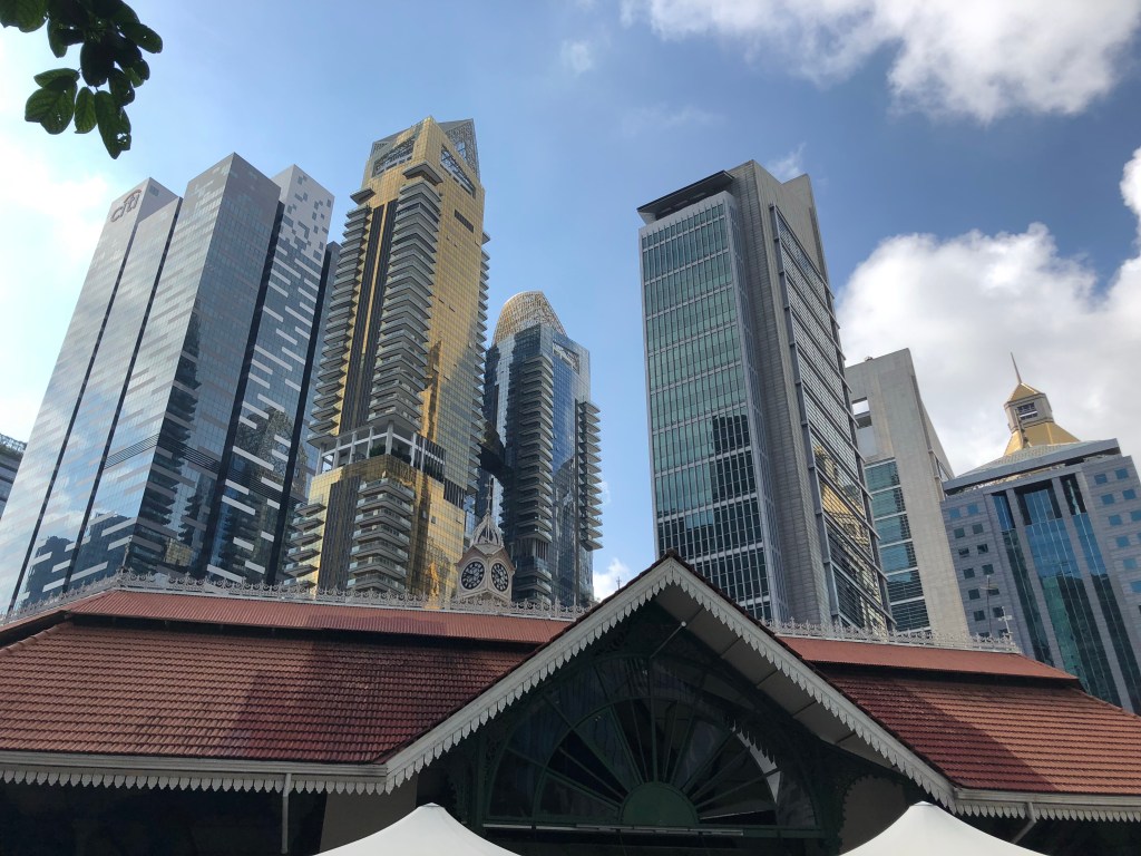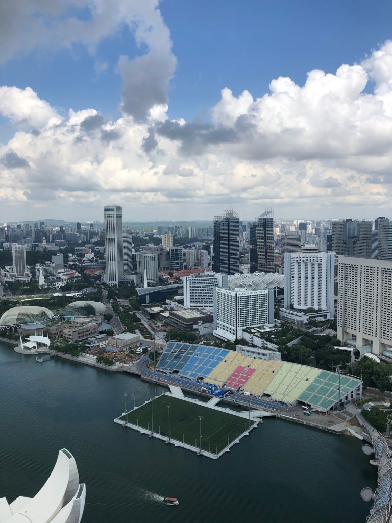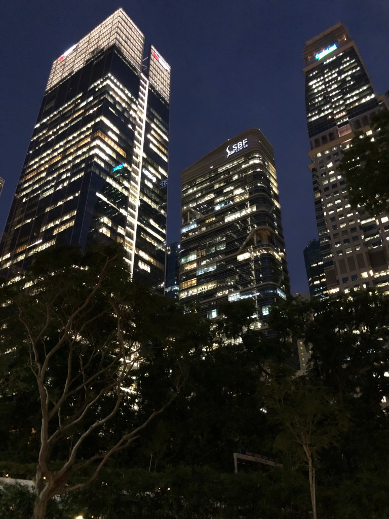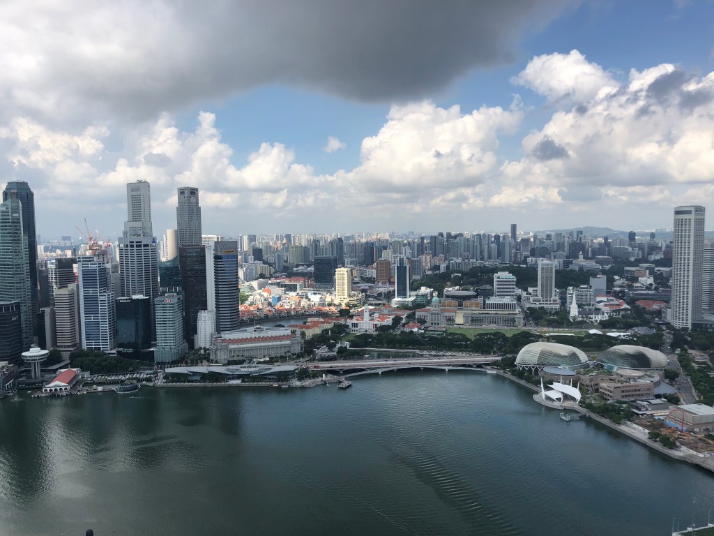 What first struck me as the plane descended was the tons of ocean freighters. I was surprised given that the country is mostly just the one island city. Then realized, because of this, there are no farms or factories. Much would then need to be imported. I was also later told that it’s the major shipping hub of much of southeast Asia.