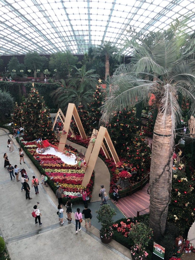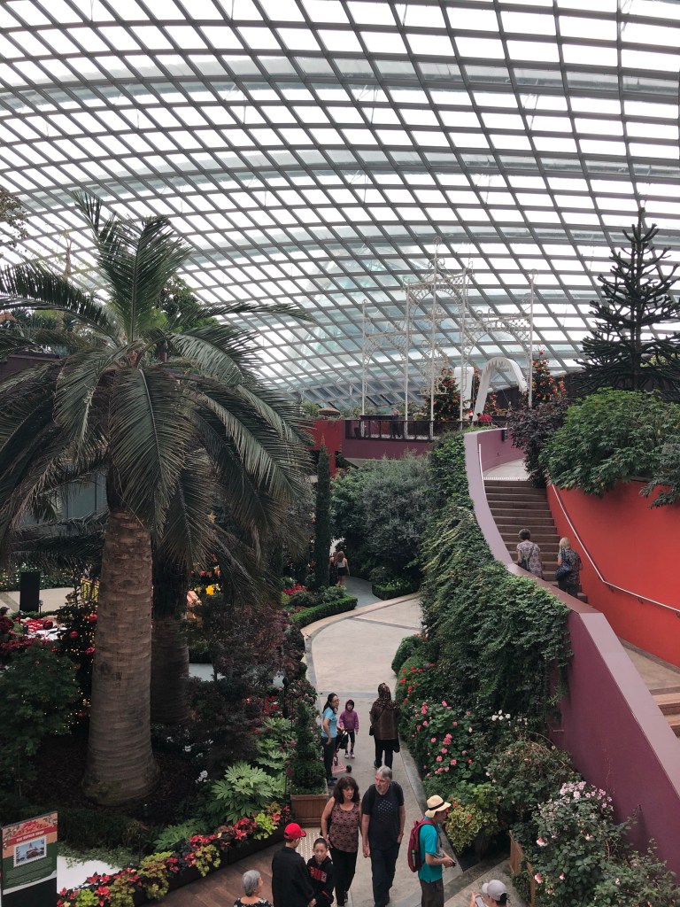 I headed to the greenhouses, first the flower garden, the world’s largest glass greenhouse. It paled in comparison to the Botanical Gardens, but was nice. There was a big Christmas display. Should’ve done this one the day before botanical gardens because flora wise those won out, no contest. Wonder what it would’ve been like if not Christmas. Music and central display.
