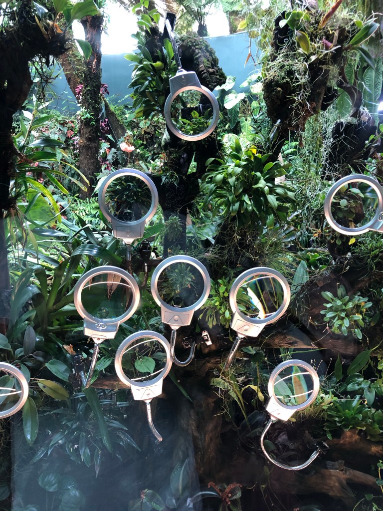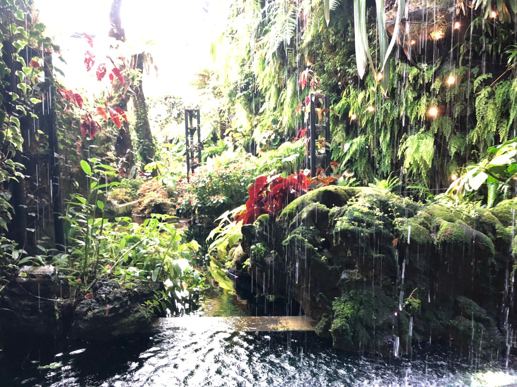 The “Fragrant Garden” was no joke. When I first walked in I was hit by the overwhelming perfumey floral smell. As you walk through it became a fresh cut grass. Then an earthy damp scent. Then a cedar wooddish odor. Not everything was flowering but there were plenty of (stamens?) in the air. Then the smells got lemongrassy. While it was beautiful, the visual experience paled in comparison to the olfactory hues. Then through the rainforest, where the dense trees were the most significant feature.