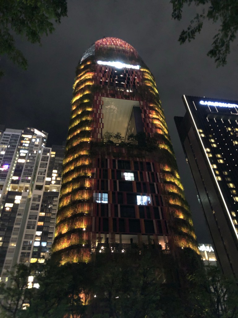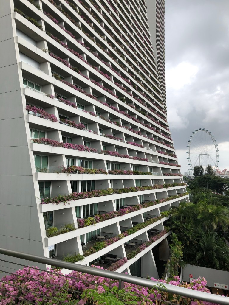 Many of Singapore’s buildings had plants all over them, regardles of height