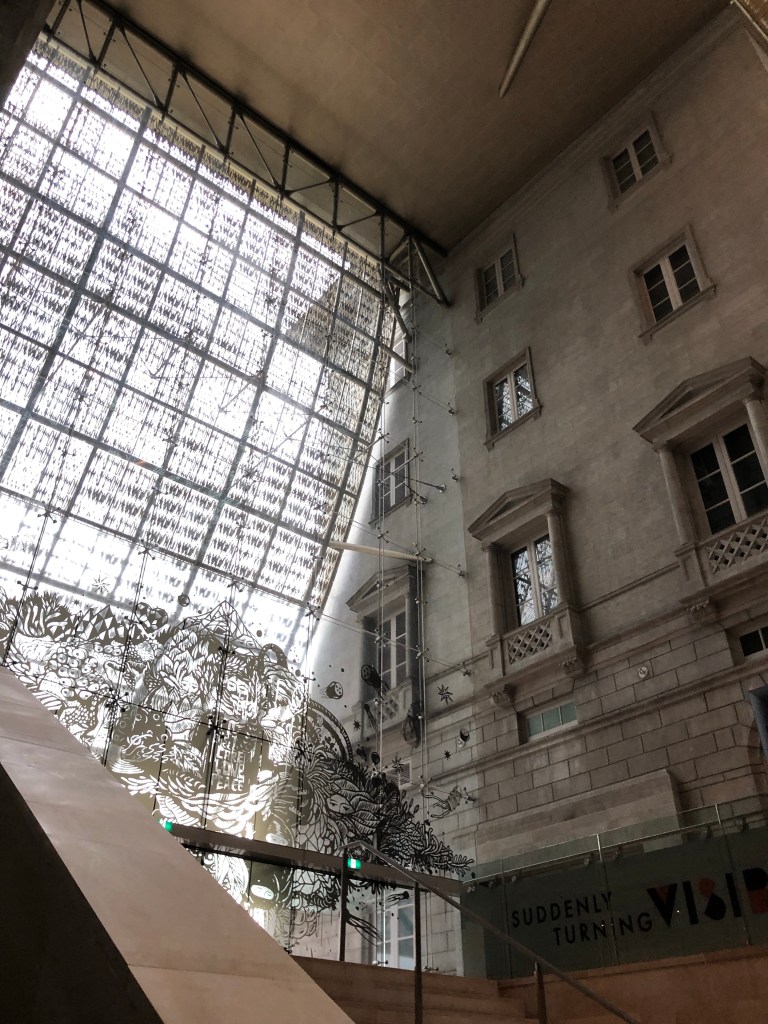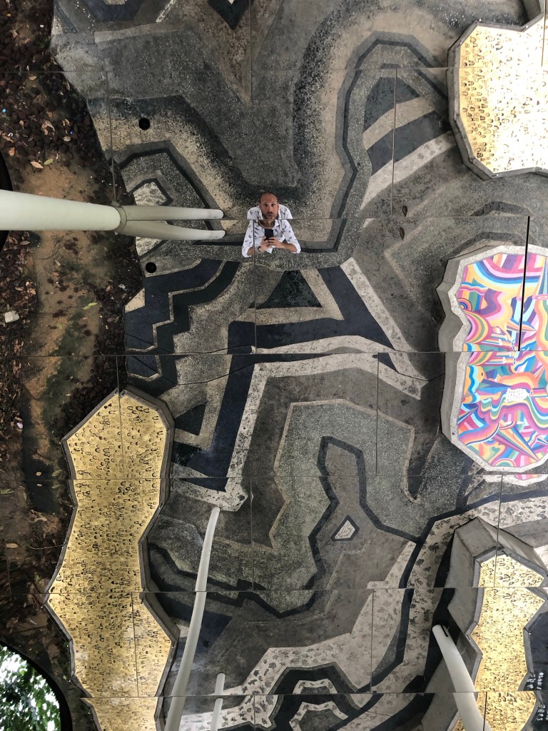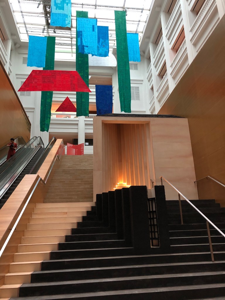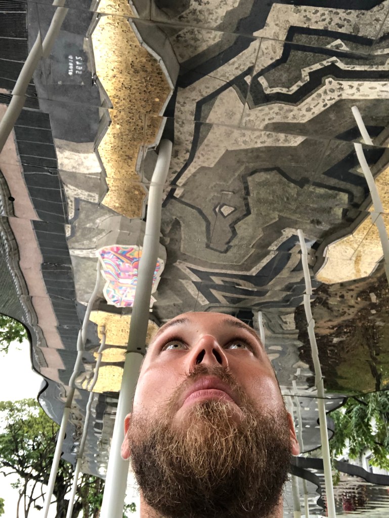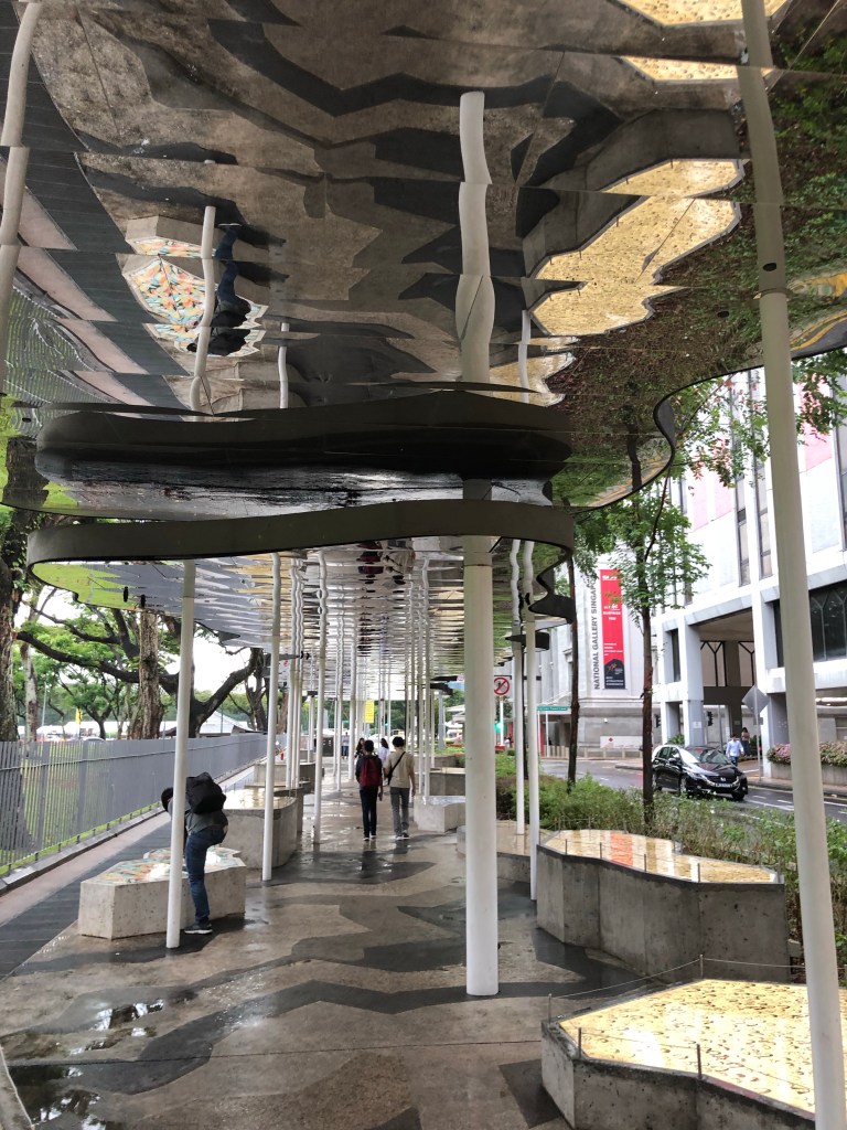 I went back to the hawker stalls for soup dumplings, these a Michelin acknowledged dish. They were phenomenal. I did some shopping and then recharged in hostel while it rained heavily, then north to last hawker (the second to receive a Michelin star) and museums. Lots of covered pedestrian circulation through awnings, architecture, and freestanding pavillions. Almost like they knew it would rain unpredictably every day when they built it all. The best of these was the mirrored ceiling outside the National Gallery. Where I question their design choices is in hardscape. Rather than concrete or asphalt sidewalks they often use 4×4 inch tiles, which are slippery as all hell.