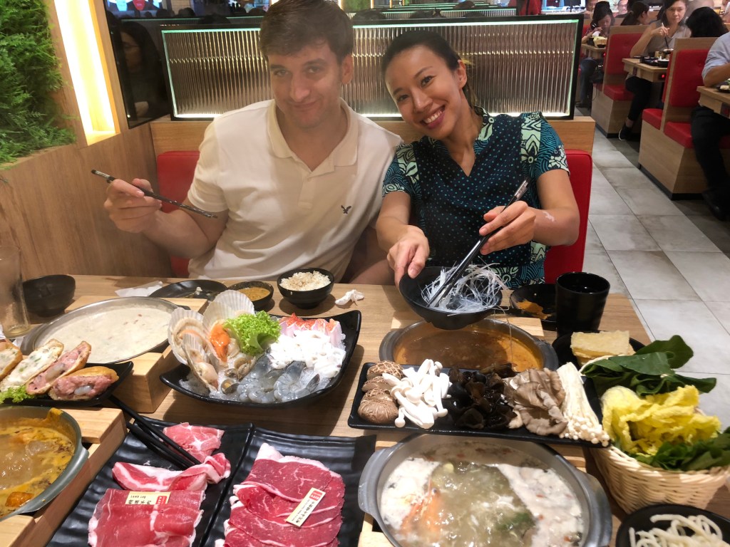 Then further south to meet Aaron and his wife Melanie (for the first time) for hot pot. As a native Singaporean, Melanie gave me lots of insight into the culture, nuance, oddities, and urban planning of the people and place. Back to their apartment and had some wine. I didn’t get to meet their 3-yr-old Elias (aka EK aka Y aka Eliahu Ben Schmuel aka Skireef’s Heir) because he was at his grandmother’s. We met up again for brunch the following morning before I headed to the airport.