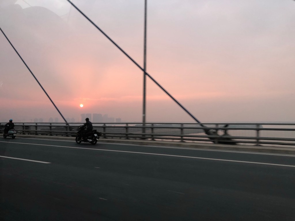 Was treated to a pollution-induced hazy sunset on my ride into Hanoi