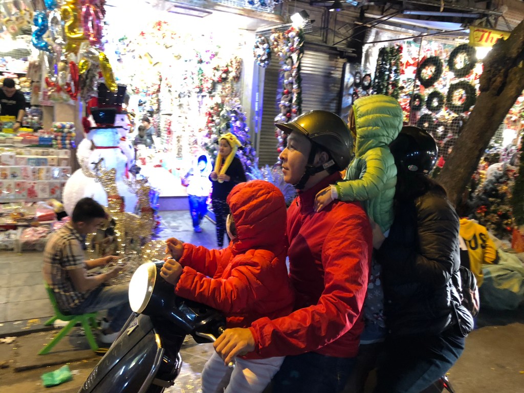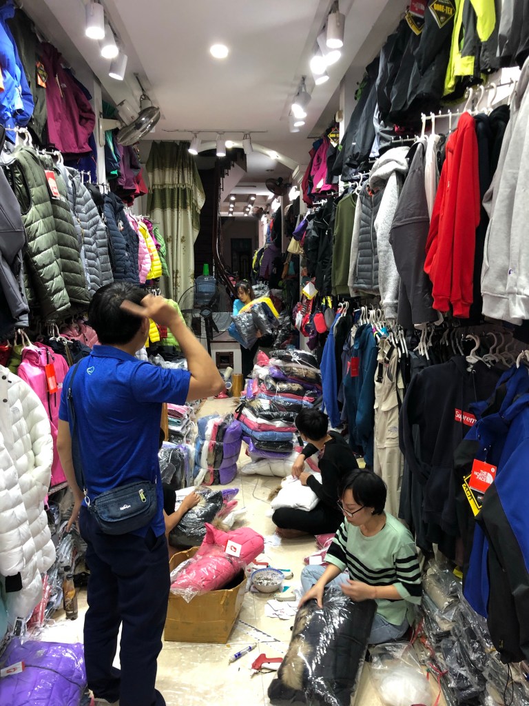 After the tour I returned to the market (a more clothing oriented one than the food and bar – loaded night market) with Xavi (Xavier), one of the Spaniards from the night before who was also on the walking tour. We spent a lot of time checking out various stores and negotiating with shop owners that covered the gamut from pleasant to rude. We both wound up buying a couple of imitation North Face jackets (seemingly every jacket in Vietnam, whether for sale or being worn by locals, has a North Face logo).