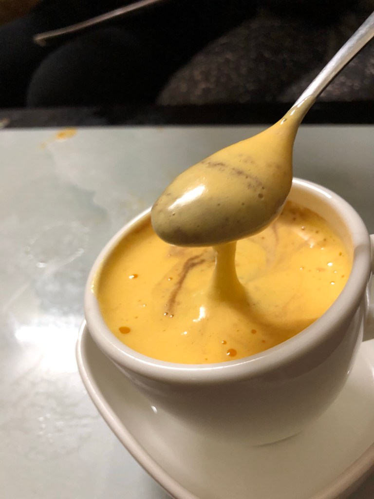 We also went to the original cafe to serve egg coffee. Basically like a coffee custard, this black Vietnamese Coffee was hidden beneath a layer of nacho cheese/queso appearing egg yolk mixed with sugar. Sounds gross but it was incredibly good.