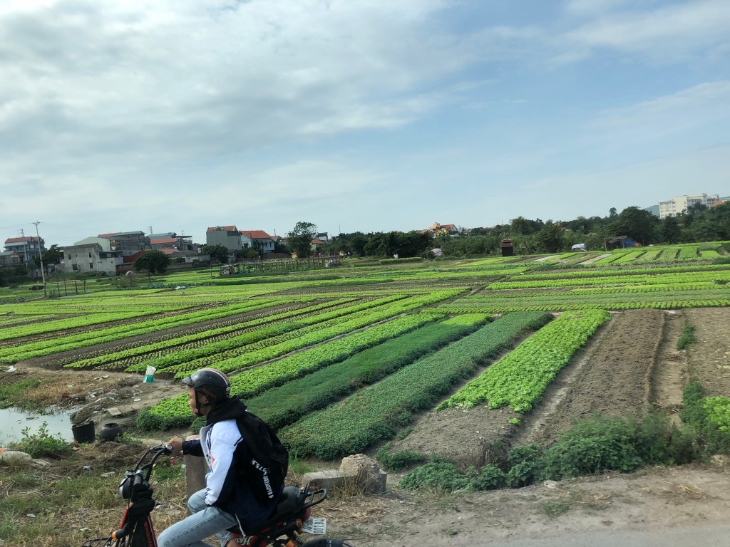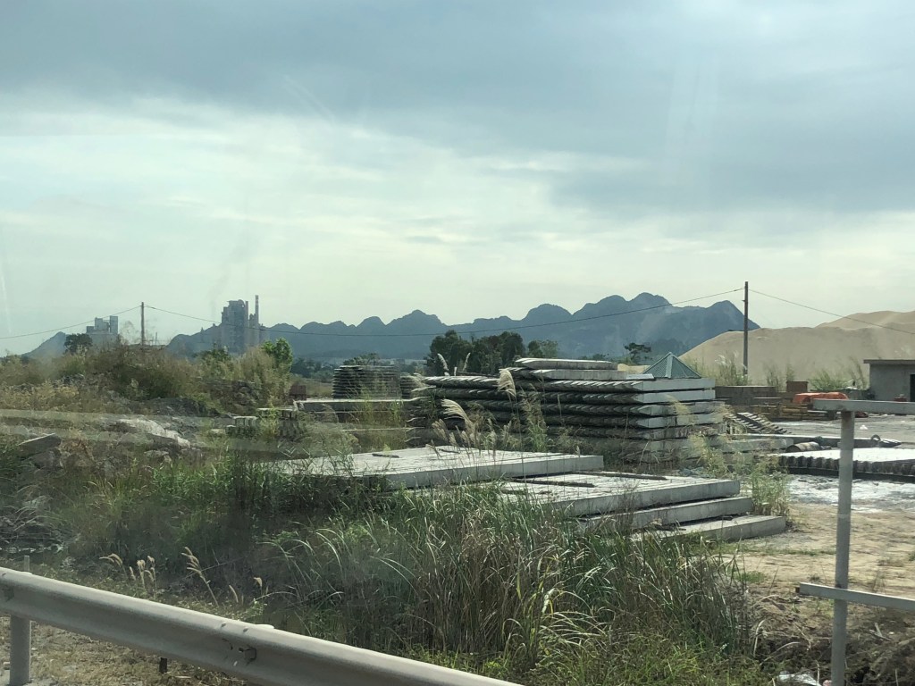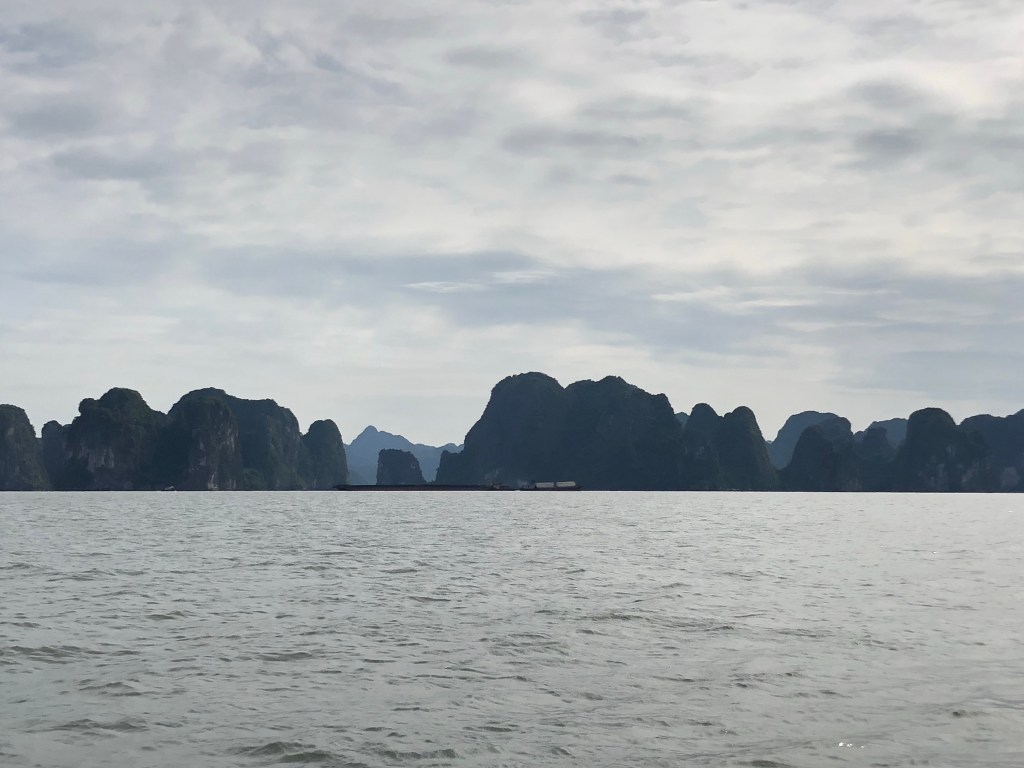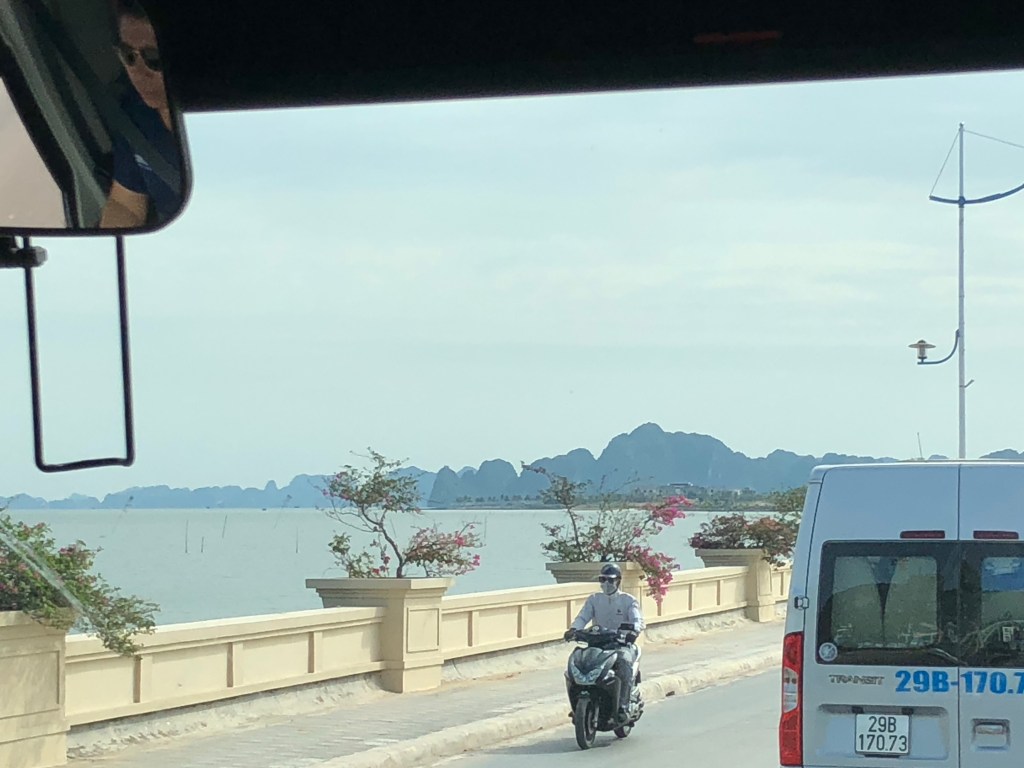 Approaching the ocean we passed through more towns in the flatlands alongside increasingly craggy small mountains in the distance. Those shapes got me excited for Halong Bay.