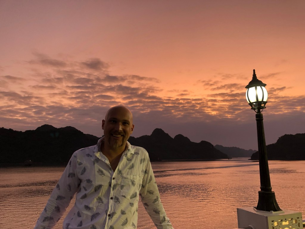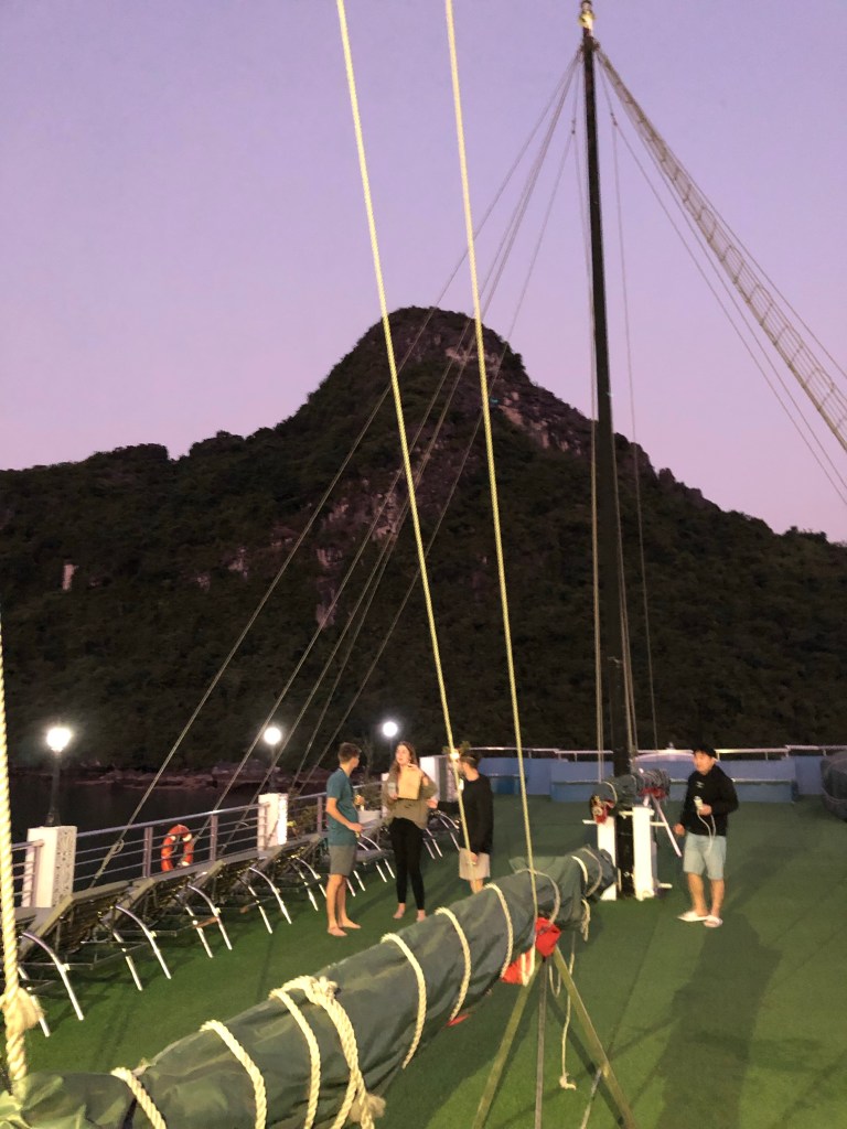 The boat was about half full. I booked it knowing it was a backpacker boat, but didn’t realize it billed itself as the premiere party boat of Halong Bay. This wasn’t my intent but also wasn’t a problem. The attendees were generally peers of mine, with lots of couples, while most singles were guys (el barco chorizo as the South Americans dubbed it). We had an amazing time amongst the utterly stunning scenery. Yoga, hot tubs, jumping from an 8 meter platform and swimming in the bay, kayaking, and a dance party. Our two “hosts” (an Englishman and Irish woman who had been at it for about 3 months) did well to keep peer pressure on for everyone to be drinking throughout the night.