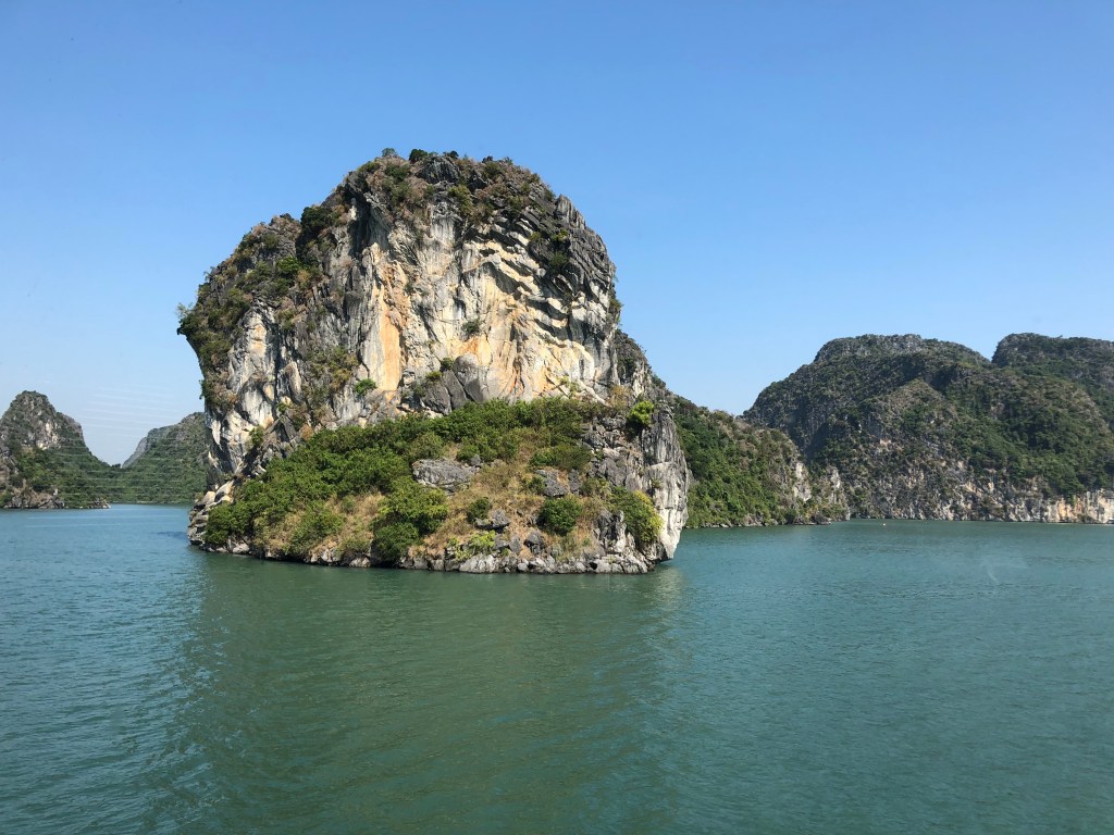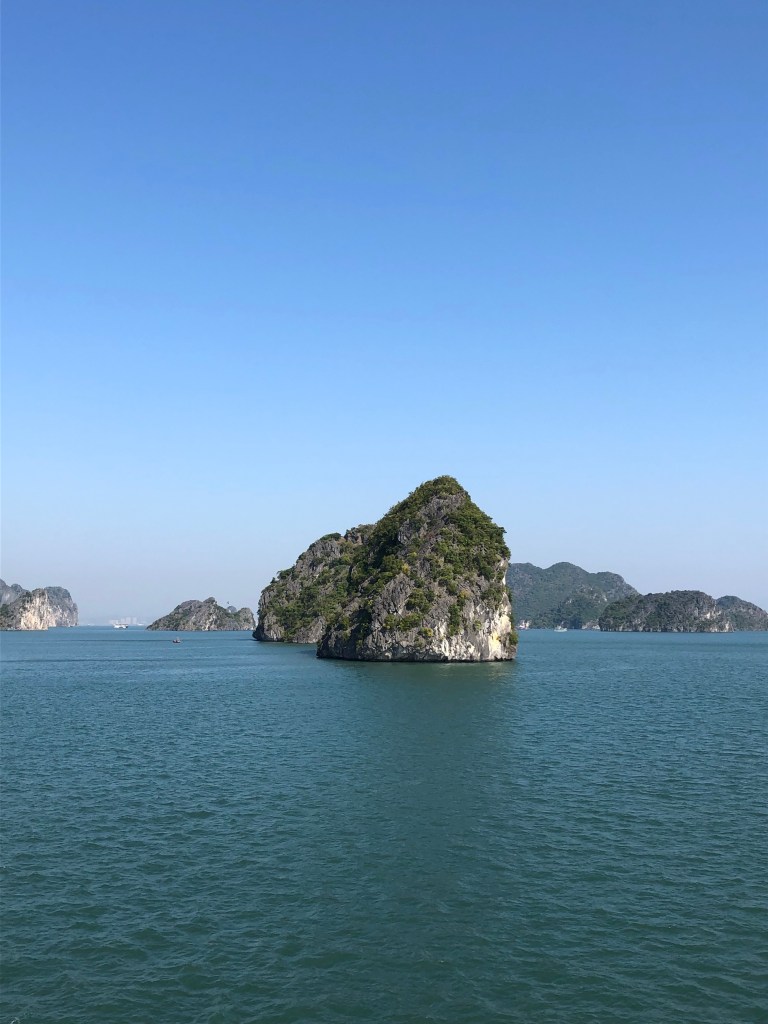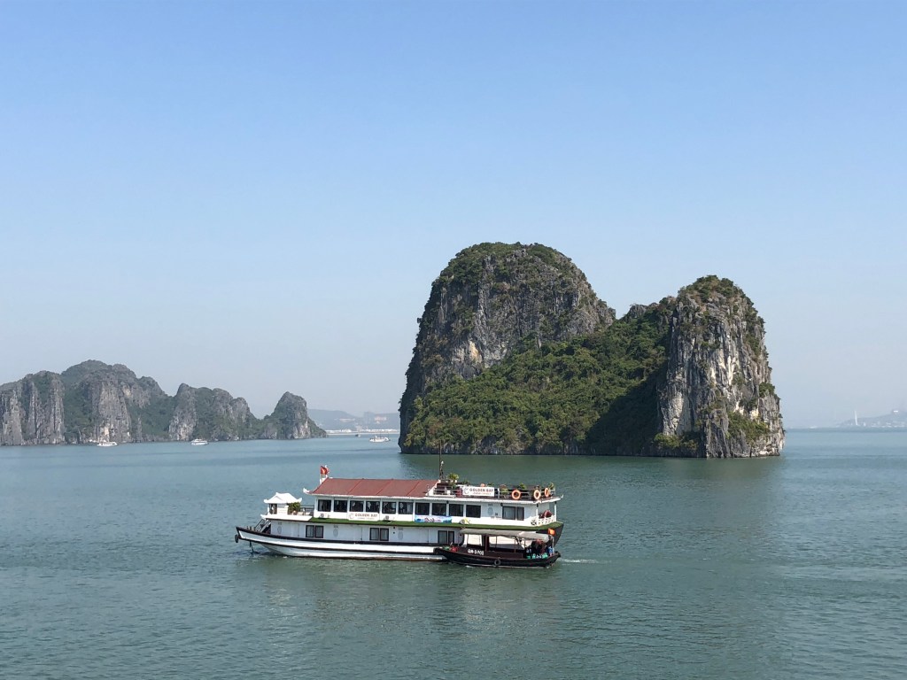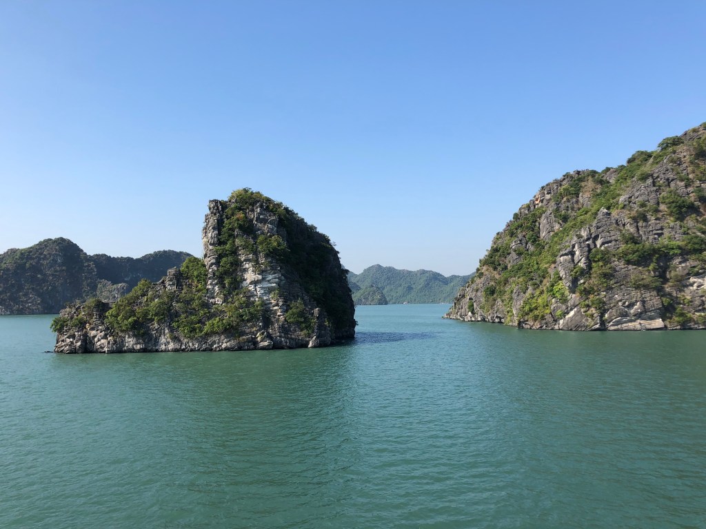 When we arrived at the harbor our guide, Harvey, explained that theres 450 boats that do a day tour and only 40 overnight, which would afford us a decent amount of seclusion on our route. The bay was stupendous and spectacular. Karst island cliffs and small green mountains jut out of the water in irregular shapes and patterns in every direction.