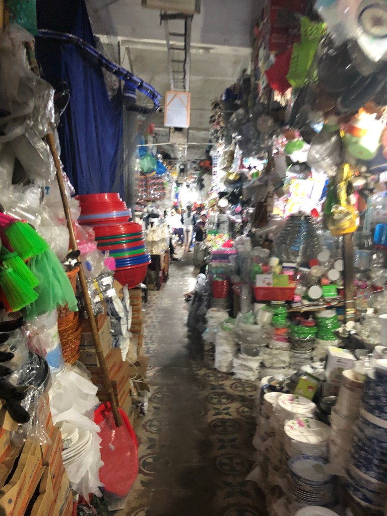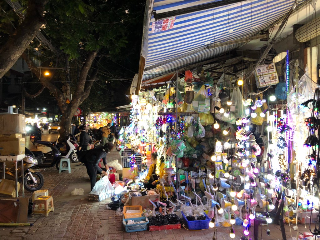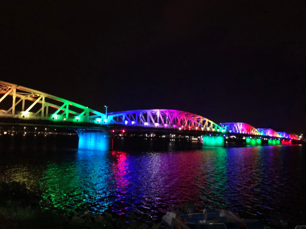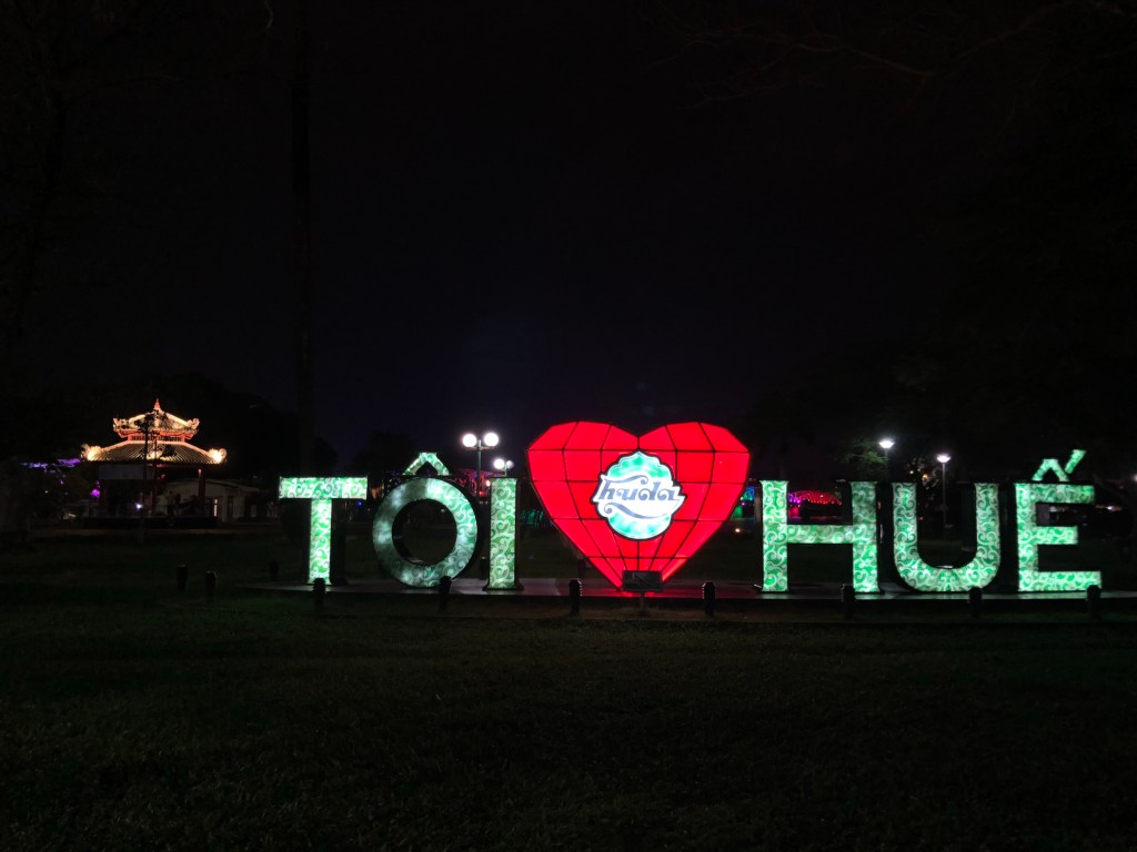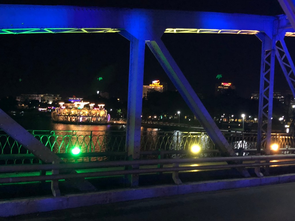 City had a lot of sculptures. Some tourism. In some ways reminded me of Aachen Germany. Hue is worth a stop if you’re passing thru, but otherwise not necessarily a destination. I picked it because 13 hours from Hanoi seemed long enough, and then i’d get to experience another place and have a relatively short ride to Hoi An, which everyone raved about and i was excited to see the following few days. Weather can no doubt dictate the experience of a place. My gray day in Hue didn’t blow me away, but maybe the green river would’ve felt more exotic under a blue sky. Walking around at night, where bright and colorful lights added a good deal of visual interest, I was more impressed.