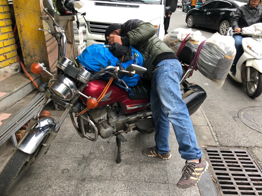 After flying from Singapore to Hanoi I found myself waiting for my visa in the airport. I had done the legwork to get my e-visa taken care of ahead of time, and as a result this was a similarly involved process to Nepal, but a little clearer. I only needed to visit 2 desks – one to submit application/buy visa and then passport stamping. I got in with no problems. Grabbed a Grab (Uber of Asia) from the airport. I didn’t even notice for first few minutes, the driver was on the left side of the car (and right side of road). This almost felt backwards to me after 3 weeks of the opposite.