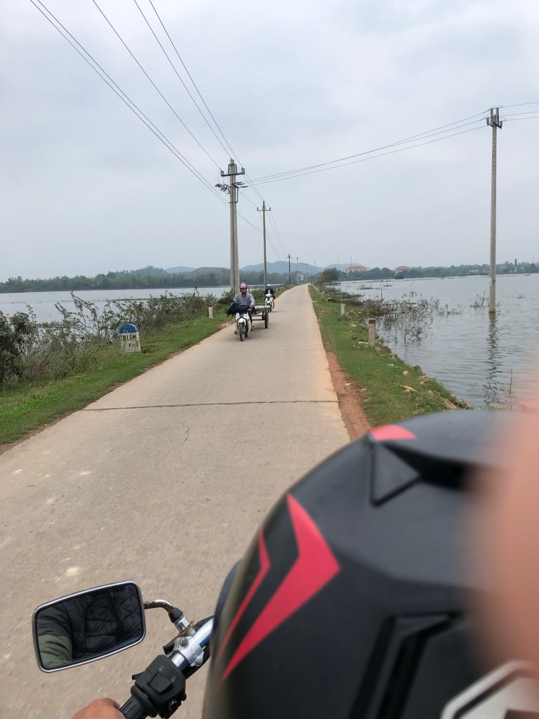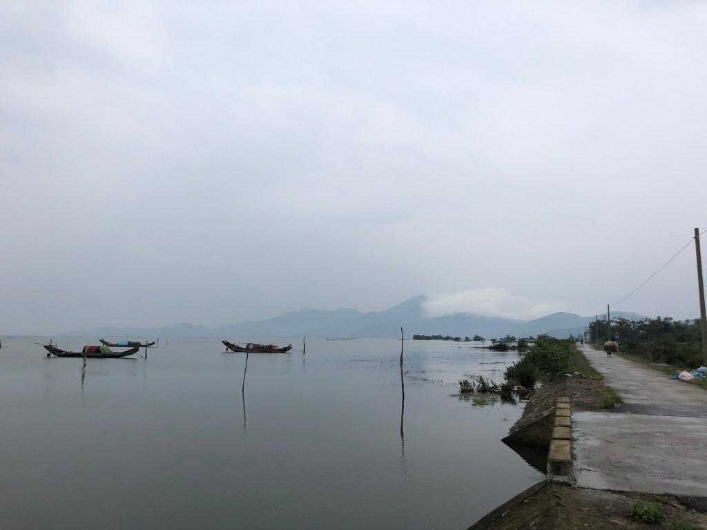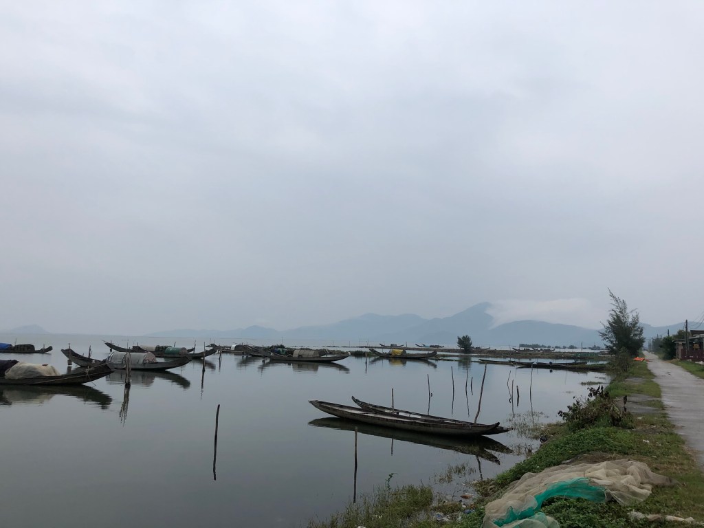 I had heard rave reviews of the Hai Van pass, a Top Gear (TM) endorsed route as one of the most beautiful and best motorcycle rides in the world. Hai means sea and Van means mountain, and this is what the pass straddled. Vietnam built a series of three tunnels so vehicles could avoid the steep slopes and many switchbacks that comprised the pass, which left it as a near exclusive tourist route. I wasn’t too enthused with the prospect of helming a motorcycle, and had promised I wouldn’t, so I took an Easy Rider, where I rode as a passenger on a bike through this route (sorry Mom). We began at the lagoon and a fishing village.