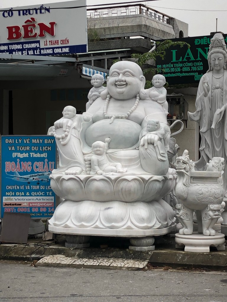 And made a final stop of the tour at the marble mountains before I was dropped at my Hoi An hostel. Each of the five marbles mountains is named for an element (wood, fire, water, stone, metal), but you can only go up water. The others all exclusively serve the marble industry.