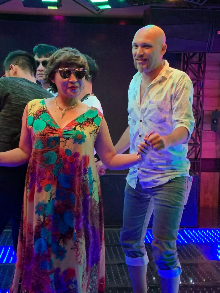 In addition to about 40 western backpackers there was one Vietnamese group, mostly younger couples, and one older woman I dubbed “auntie” who really enjoyed dancing with me.