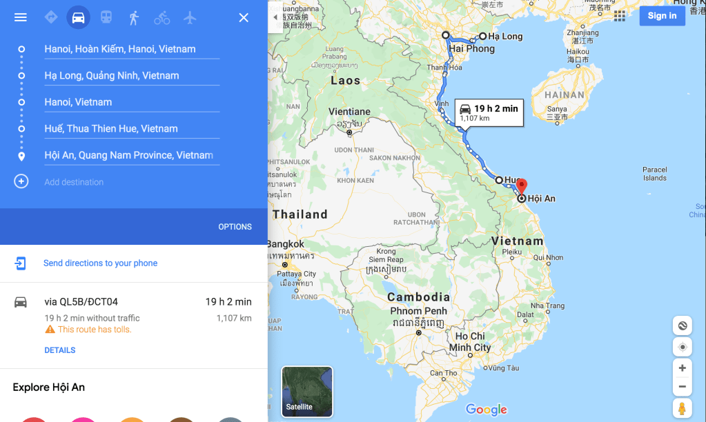 Hanoi, Halong Bay, Hue, and the Hai Van Pass. Next is Hoi An and Ho Chi Minh City.