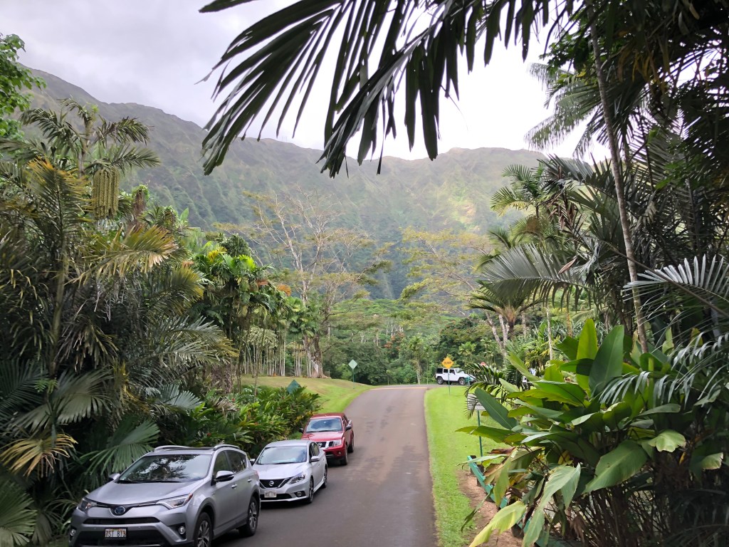 I made some friends at the hostel, Val, an Italian, and Max, Leon, and Lena, and we made plans to to head to a botanical garden the following day. We all piled into my Camaro and headed to Ho’omaluhia. It was a nice stroll along a path past well labeled flora to a manmade lake with a ridiculous number of fish accustomed to being fed.