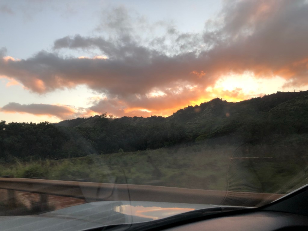 I had made a list of good affordable places to eat on both islands, so I headed up Oahu’s west coast to get dinner at a place known for it’s poi and the meal was terrible. Oh well. Back to Honolulu to my hostel. On the way I wasn’t able to see the sunset directly but I got some nice views.